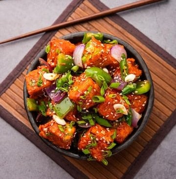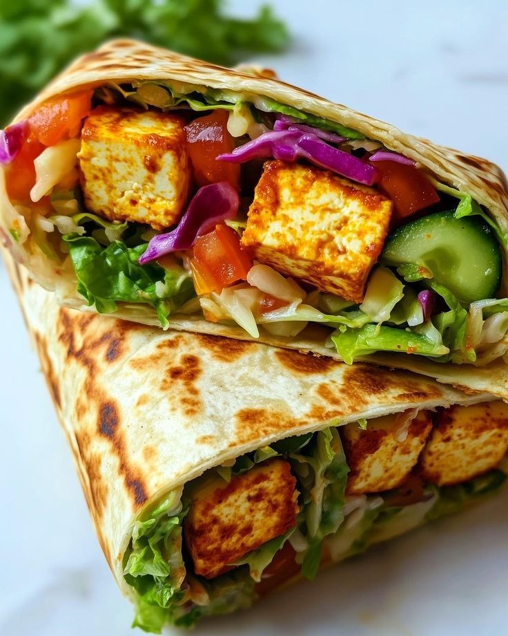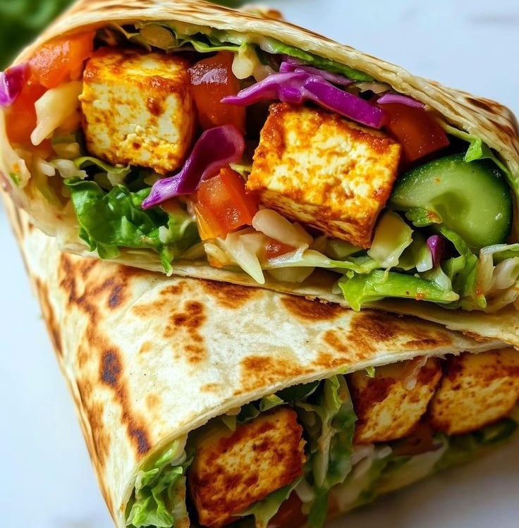 Paneer cubes in exotic sauce with veggies and spices in a tortilla