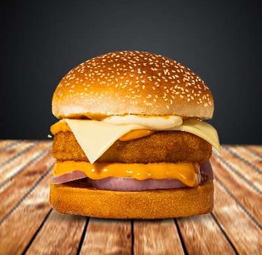 Creamy burger with paneer, veggies, paprika, cheese and special sauces